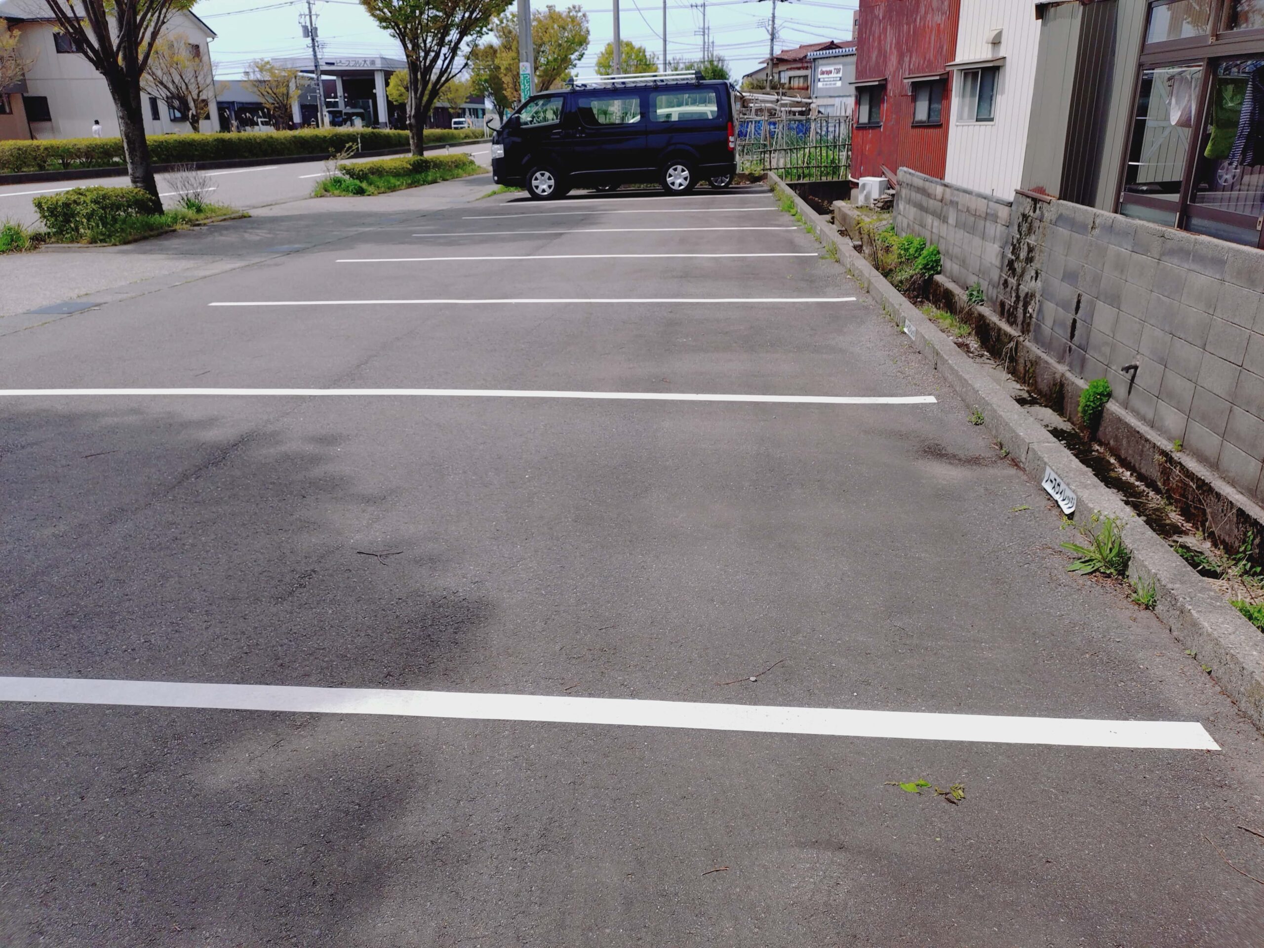 第2駐車場は、奥の6台分が利用可能。手前は別会社専用のスペースなので、現地の表記を確認して利用しましょう。