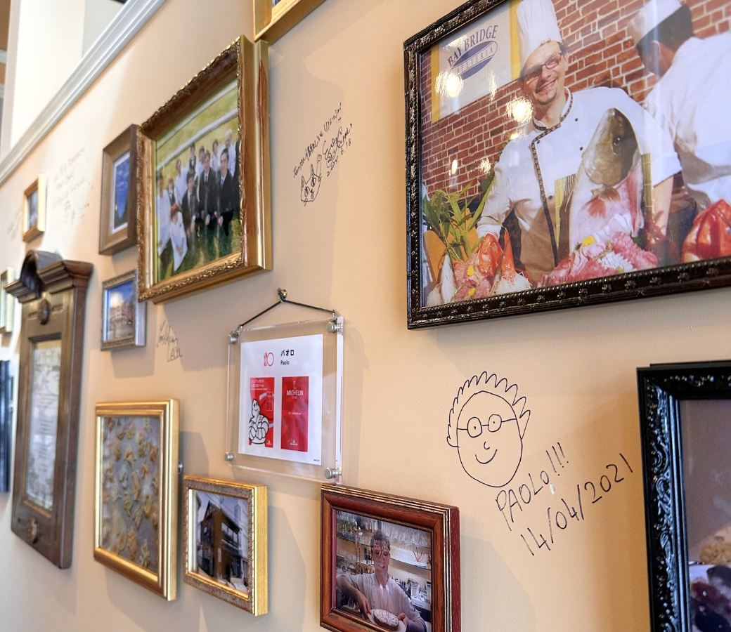 お店の壁には「Paolo」のサインをはじめ、様々なメッセージが。