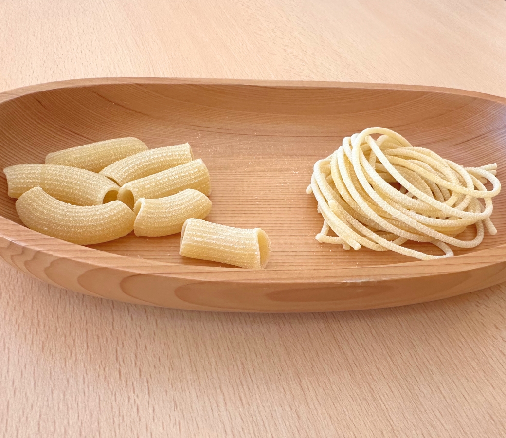 この日は「ベーコンと空豆のペペロンチーノ(ビゴリ)」と「海老のトマトクリームソース(リガトーニ)」の2種類でした。