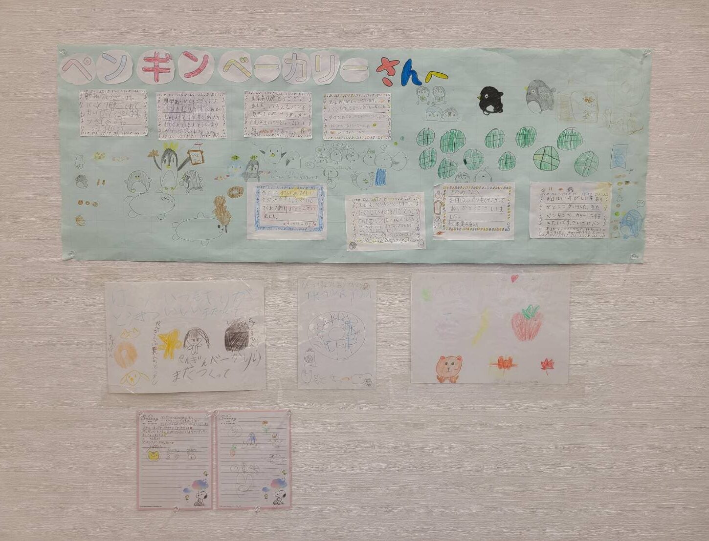 店内の壁には地域の子どもたちから寄せられた感謝のメッセージやイラストが飾られており、もりの里の人々に愛されている様子が伝わってきます。