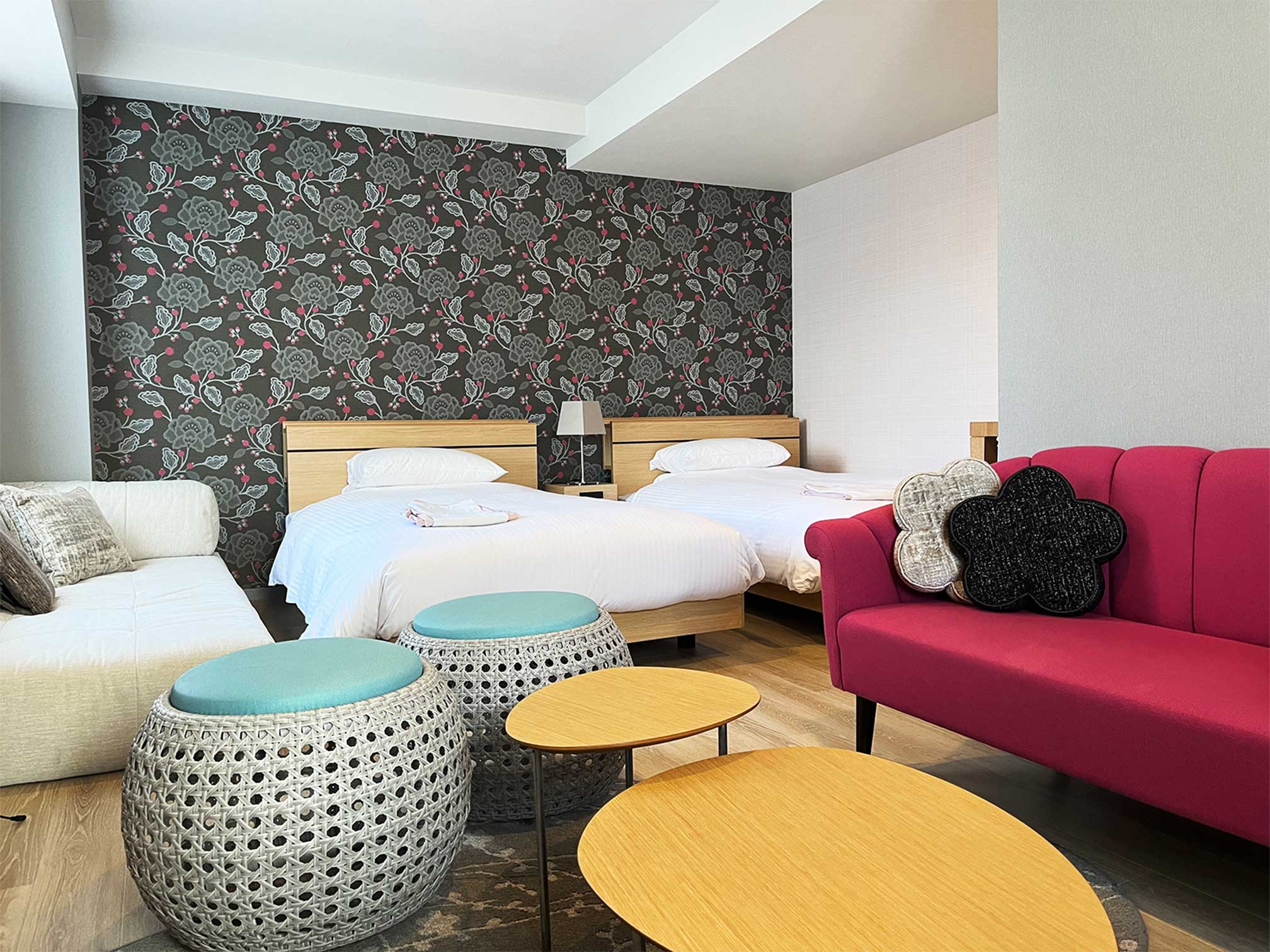 もうひとつのコンセプトフロア「悠」は、落ち着きとおしゃれさが感じられるお部屋。コンセプトフロア悠は男性の宿泊も可能。