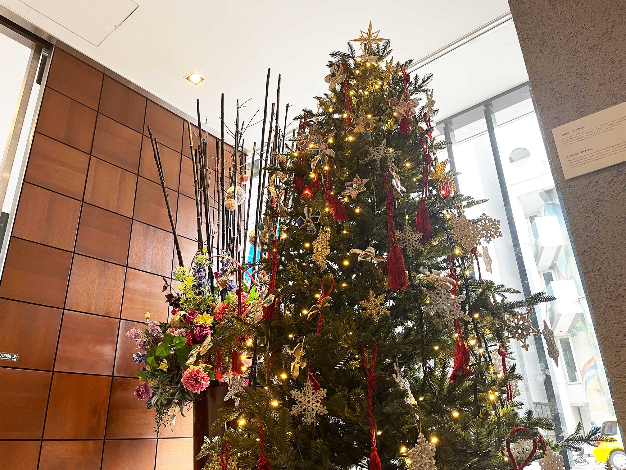 入口の自動扉が開くと、季節のクリスマスツリーがお出迎え。