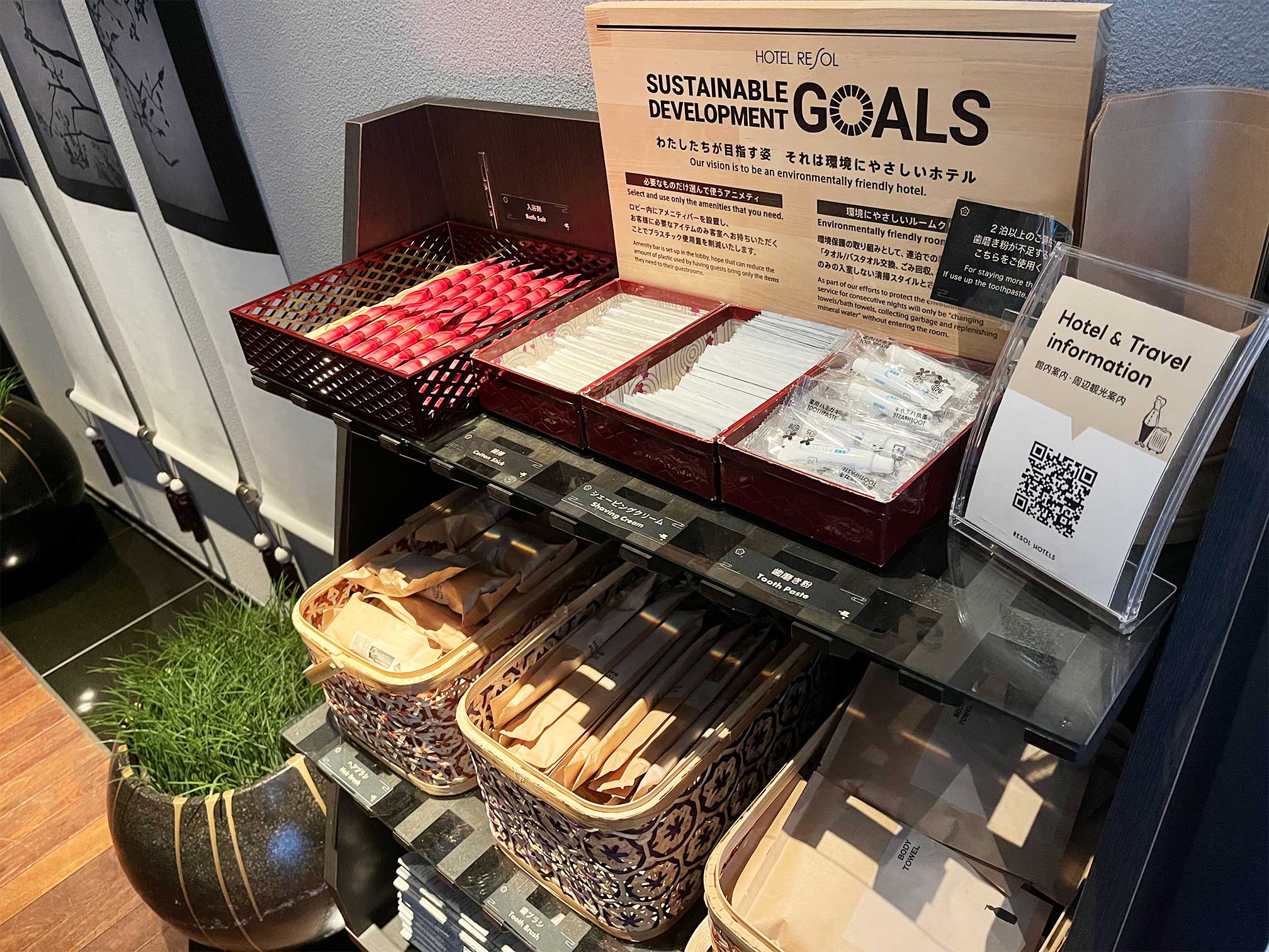 チェックイン後は、ロビー横のアメニティコーナーで必要な分をピックアップ。
