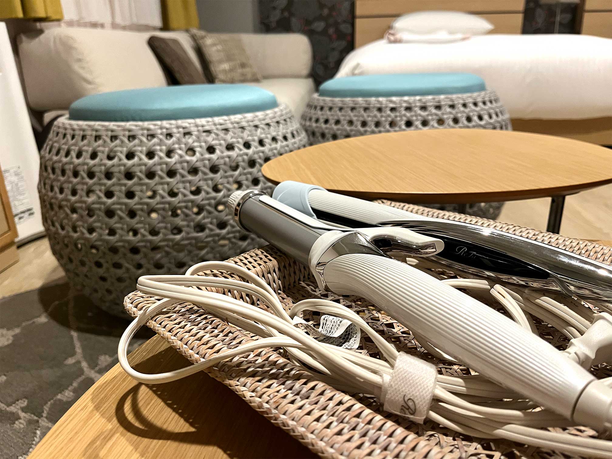 ネック・ハンドマッサージャー、衣類スチーマー、シューズドライヤー、そしてReFaのアイロン類もここで貸り放題。