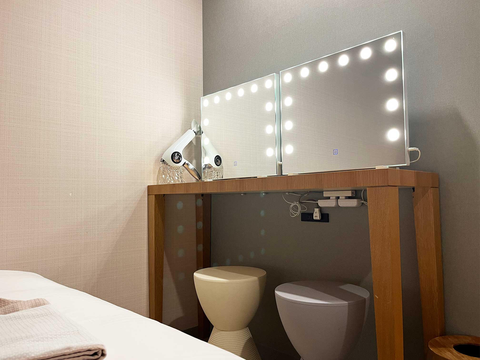 ドレッサーはなんと2台。ライト付きミラーで、もう完全に“女心わかってる”仕様です。
