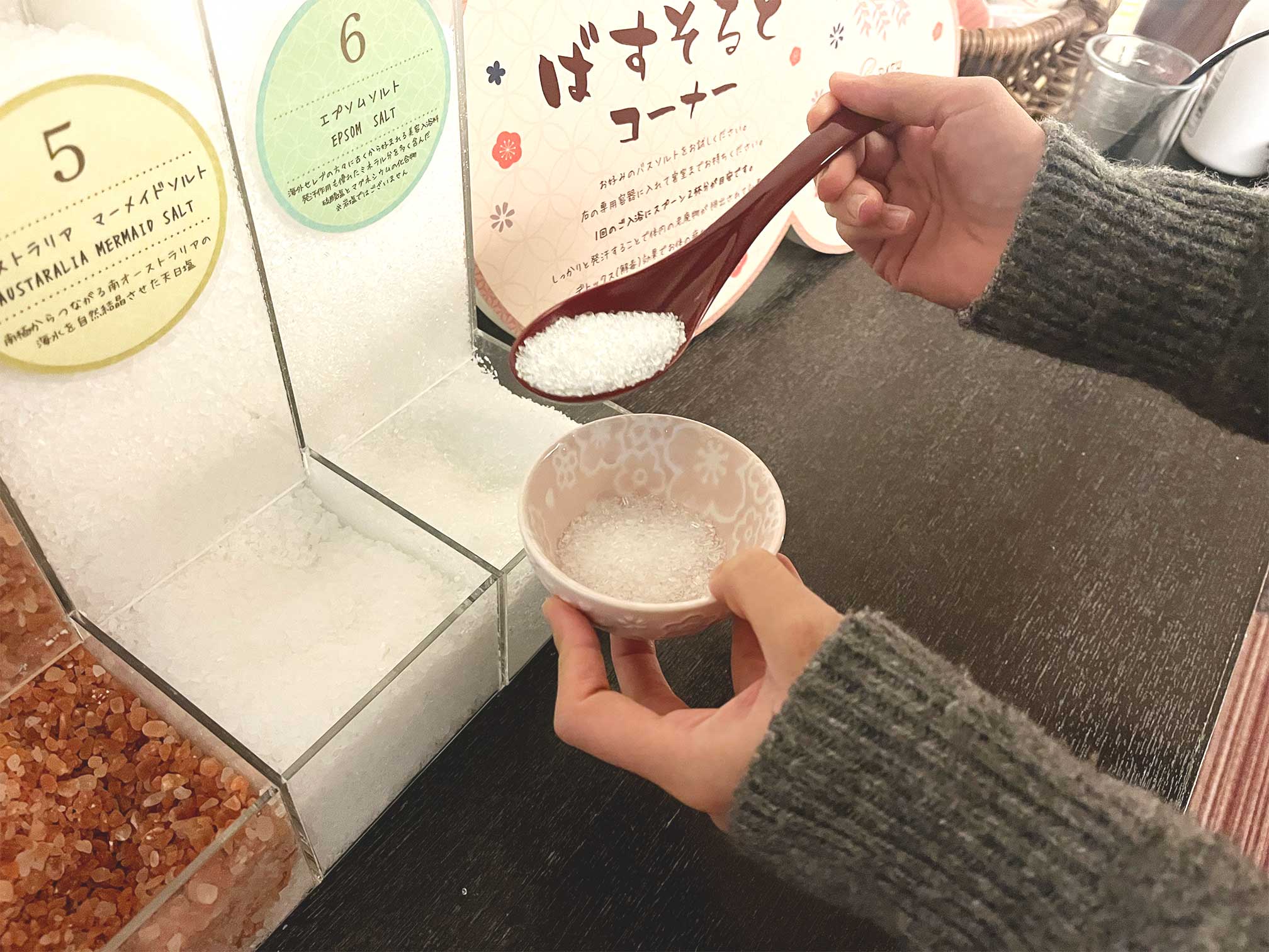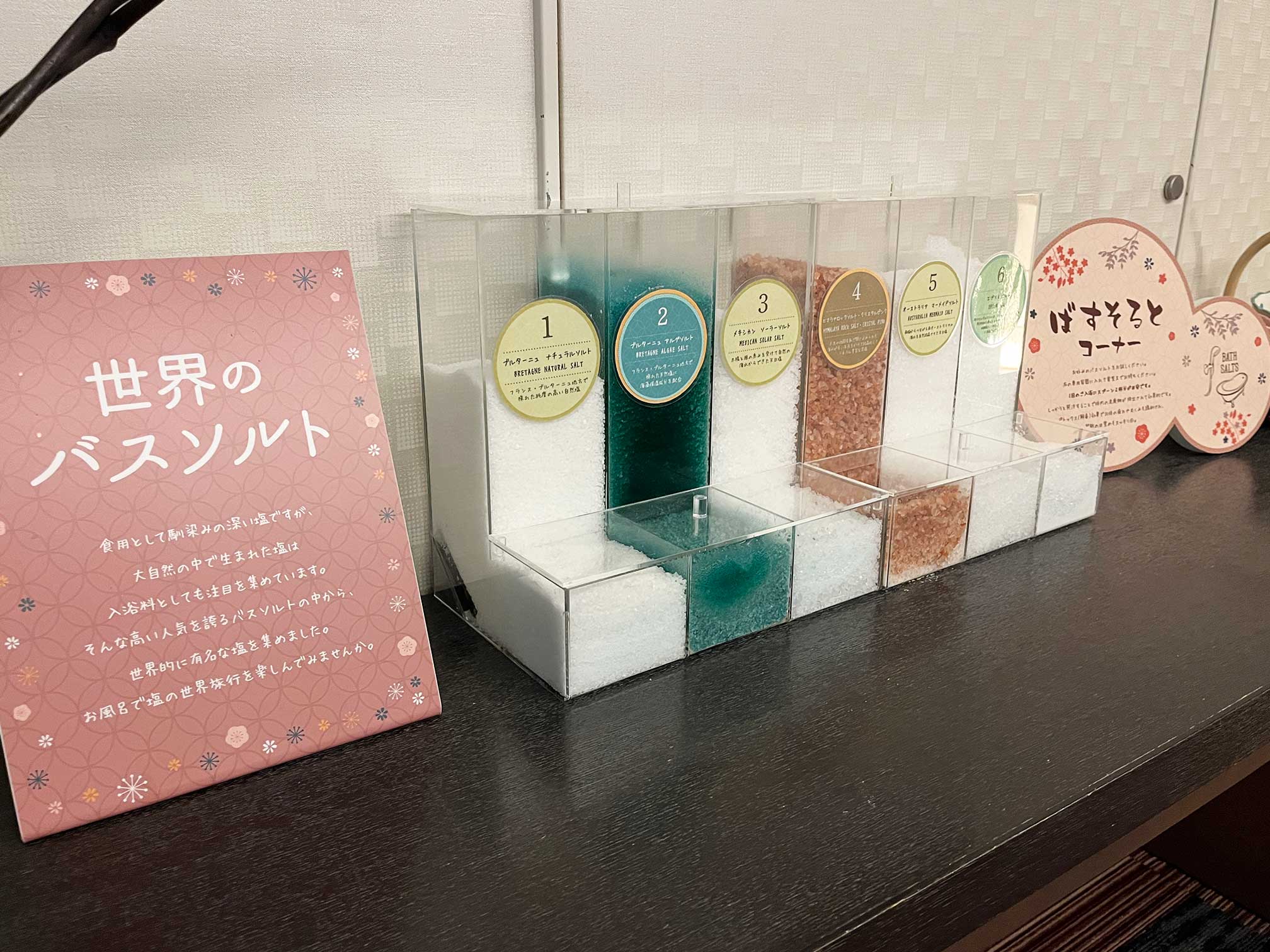 まず迎えてくれるのは6種類の「世界のバスソルト」