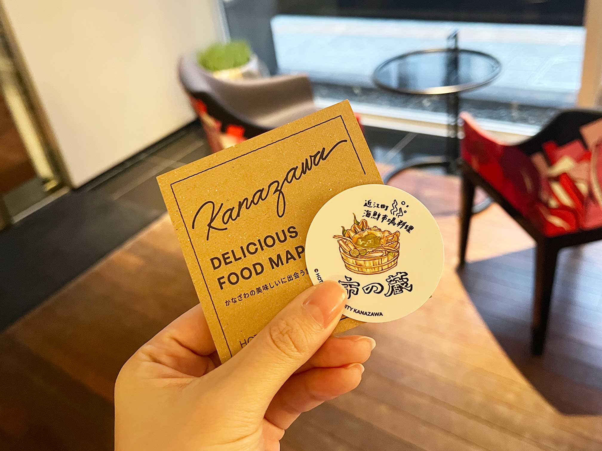 また、「かなざわの美味しいに出会う旅」マップを購入すると、掲載店で飲食しレシートをフロントに見せるだけでオリジナルステッカーがもらえる企画も。