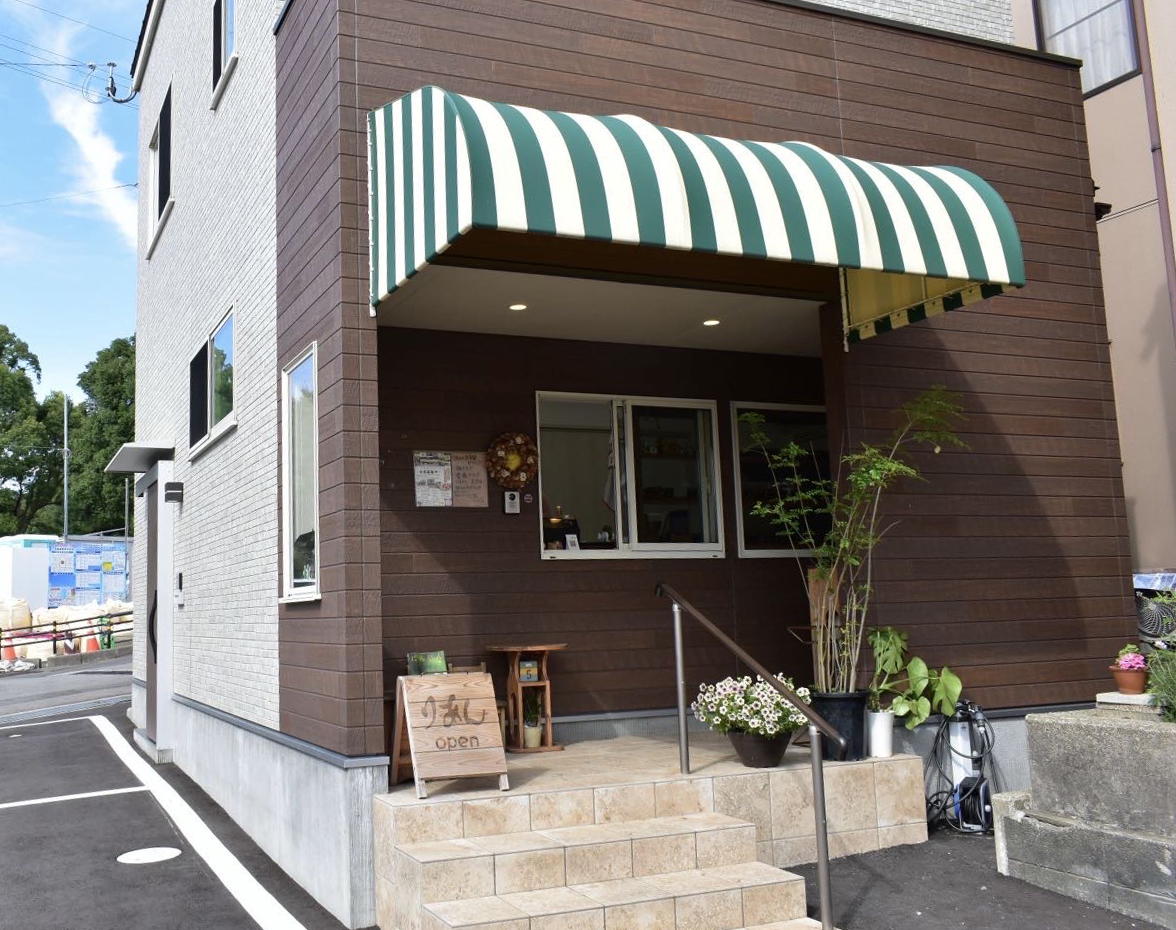 粟崎交番交差点の路地を入ってすぐのところにあり、緑と白のオーニング(日よけ)が目印です。