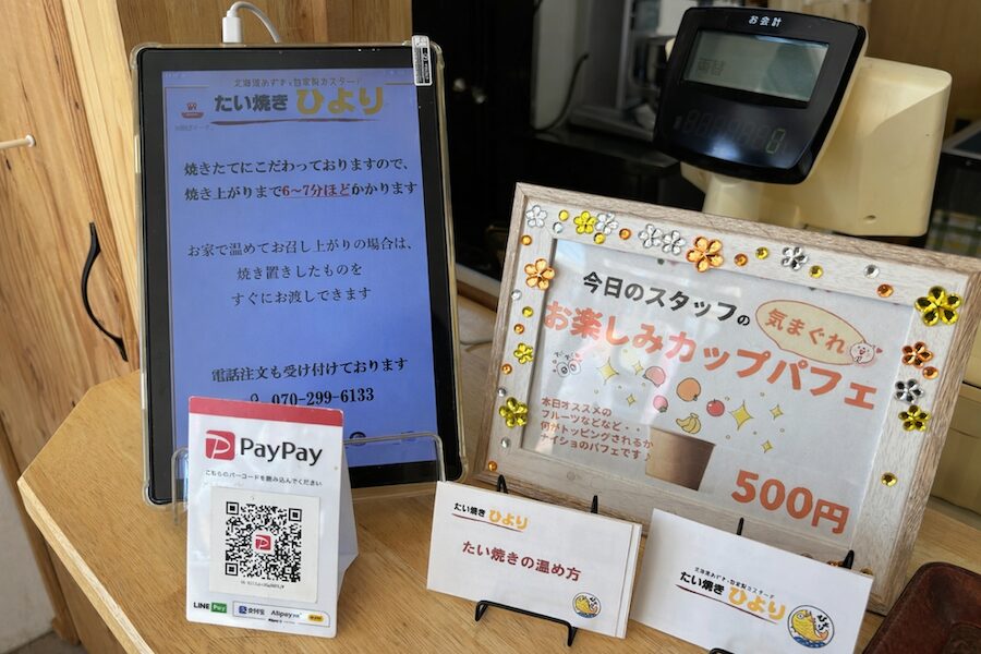 お支払いは現金のほか、PayPayやLINE PayなどのQRコード決済にも対応。