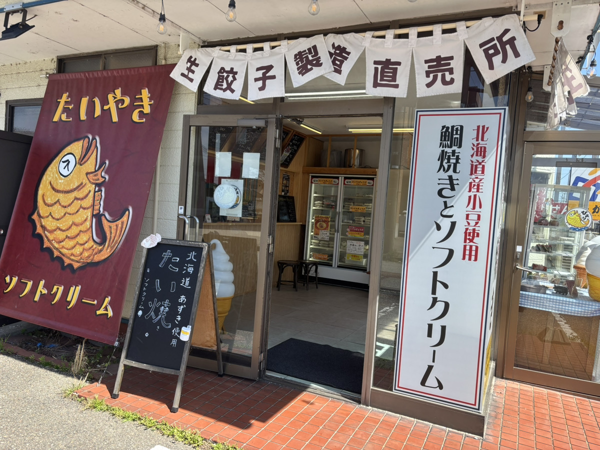 国道8号線方面へ車を走らせていると、大きなたい焼きのイラストと「たいやき ソフトクリーム」と書かれた看板が目に入ります。