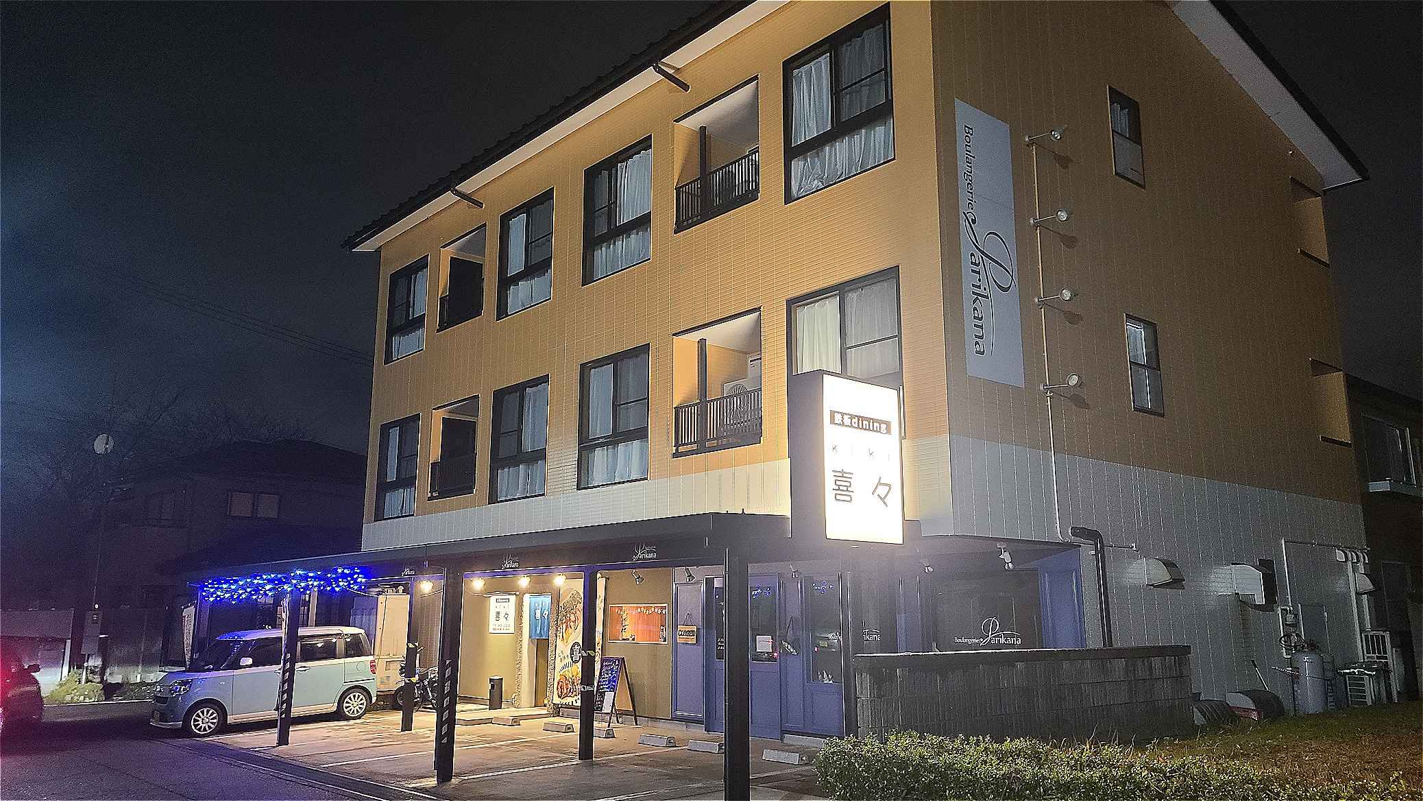 お店の前に到着すると、洗練されつつもどこか温かみを感じる、おしゃれな外観が迎えてくれます。