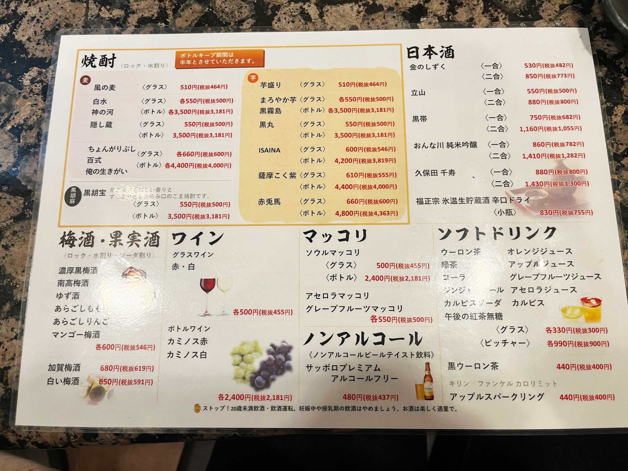 お酒のメニューも豊富です。