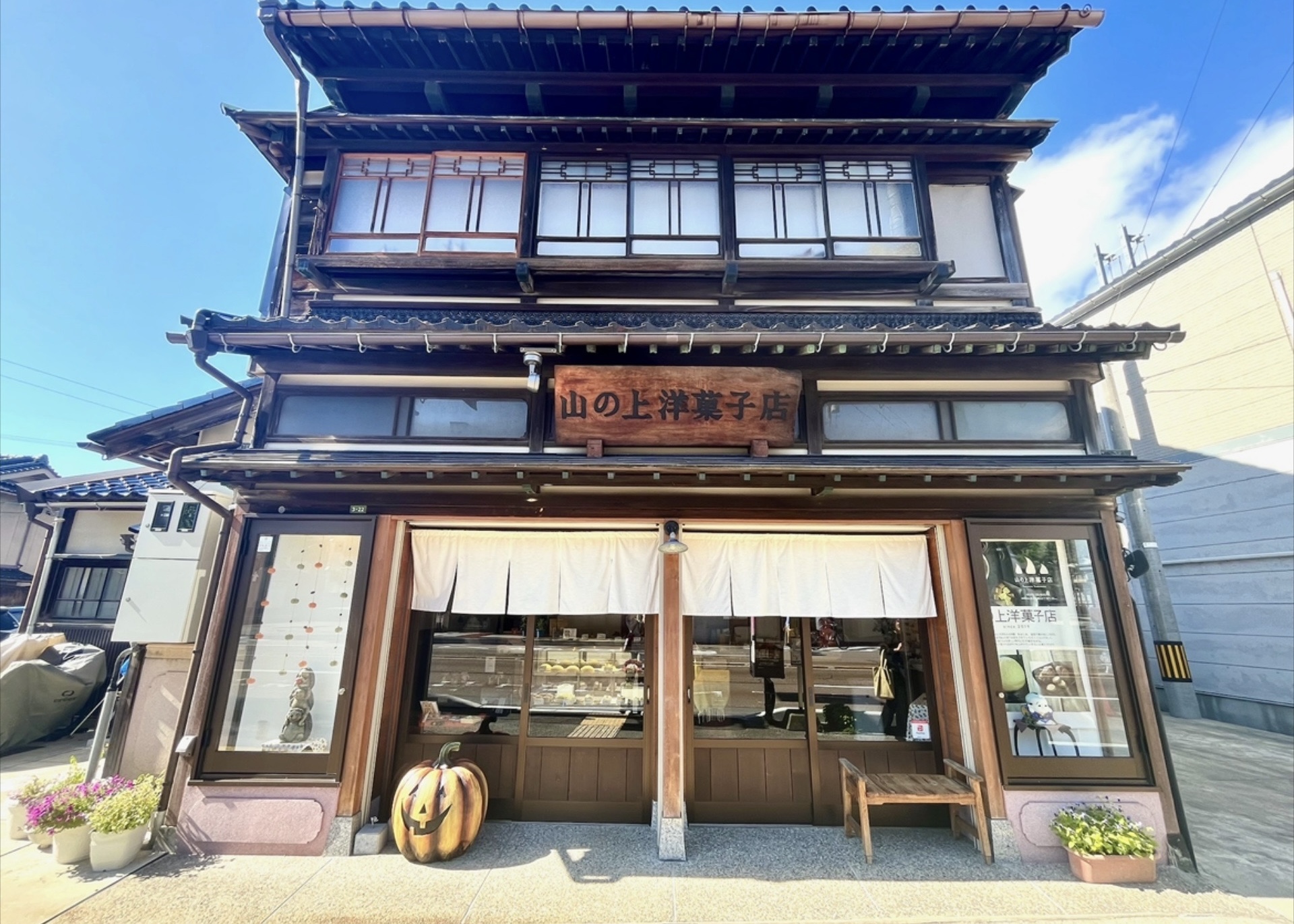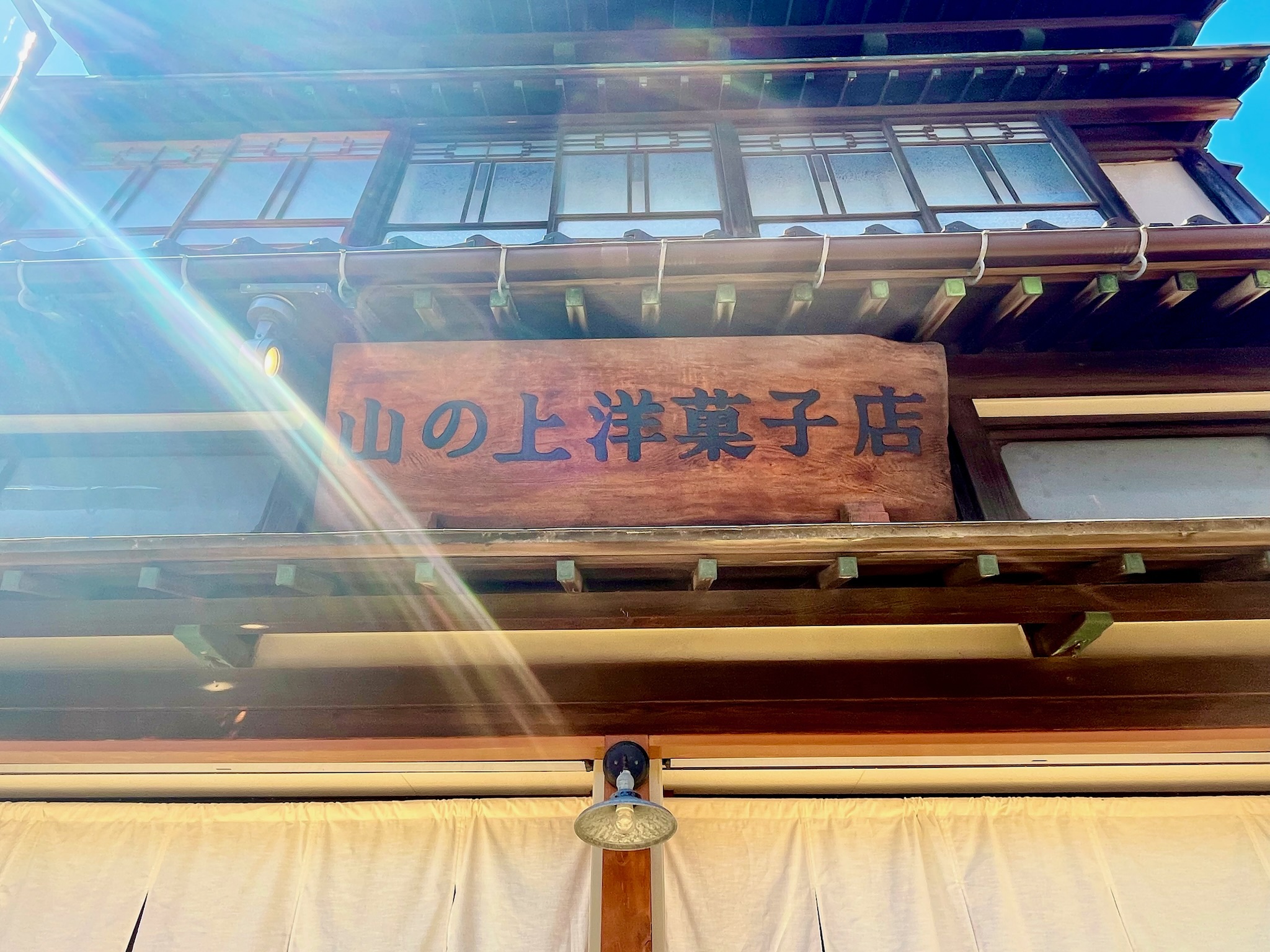 「山の上洋菓子店」の文字がはえる大きな看板。