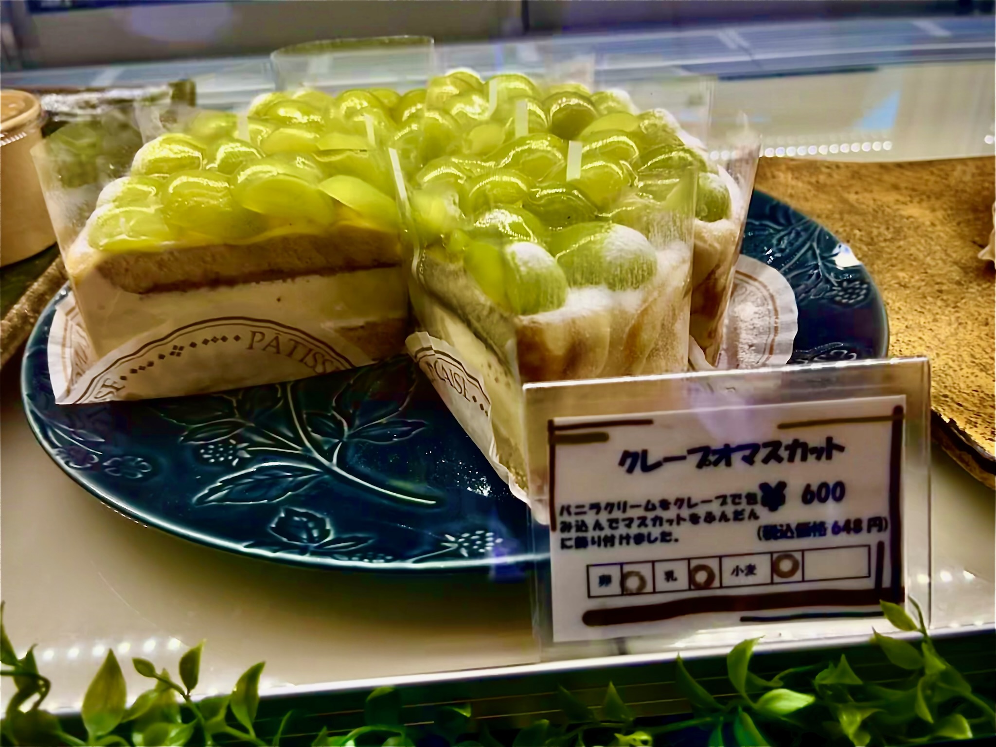 「クレープオマスカット 648円(税込)」は、上にたっぷりのマスカットが彩る季節のケーキ。