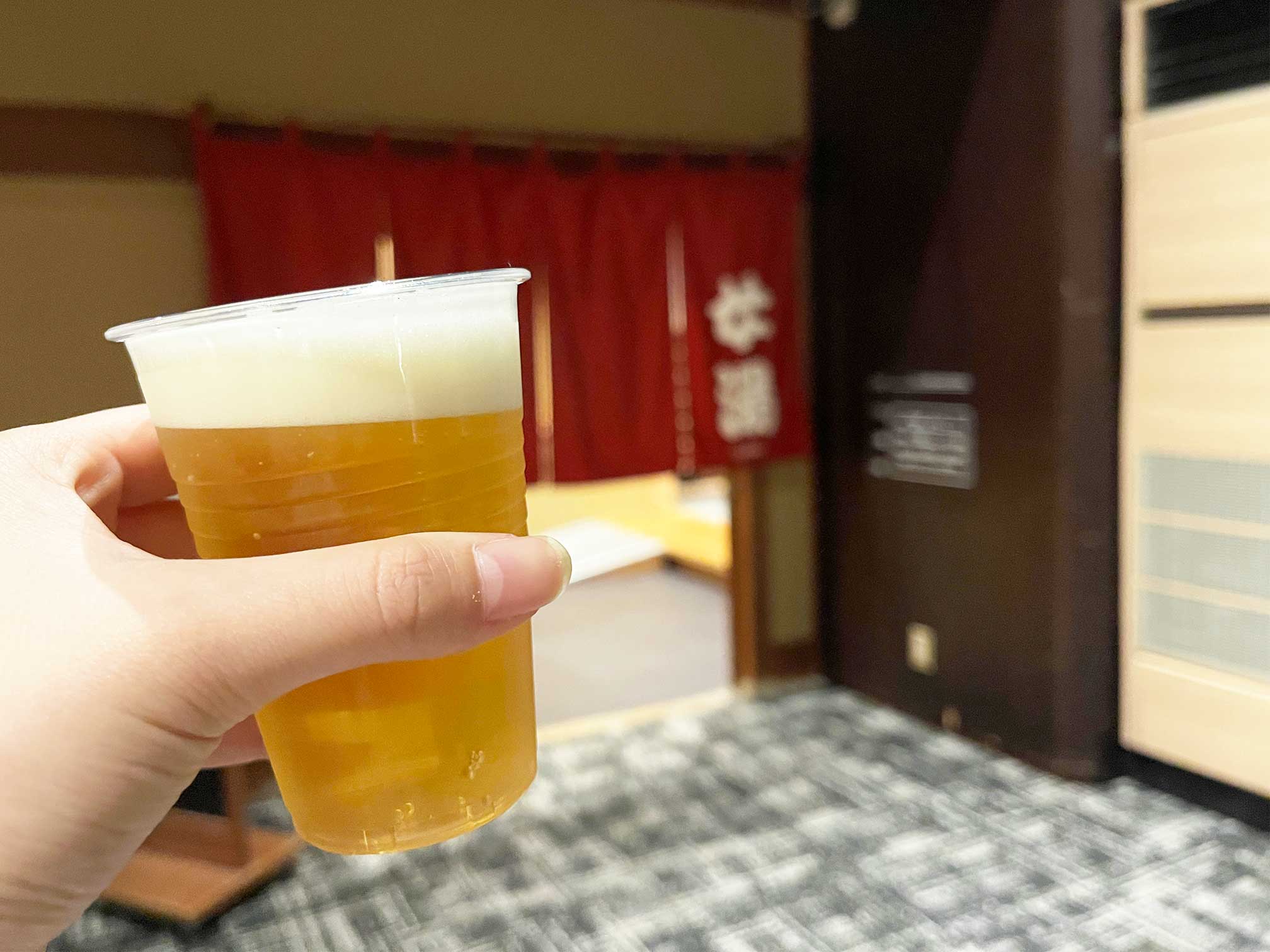 って、えぇ、大浴場の目の前にビール!