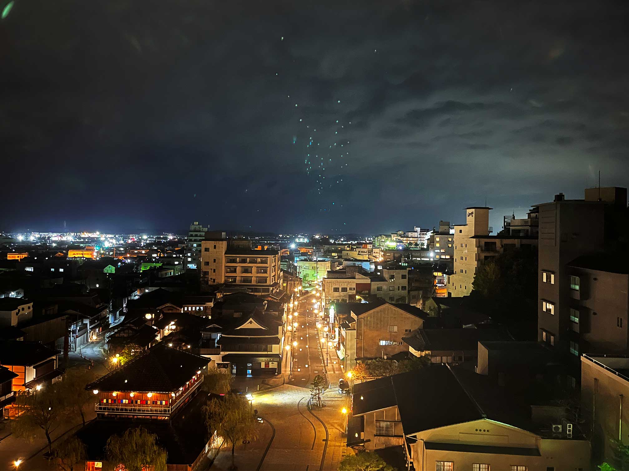 私は朝1番の5時に入りましたが、暗闇に浮かぶ加賀の灯り、頭上には満点の星。
