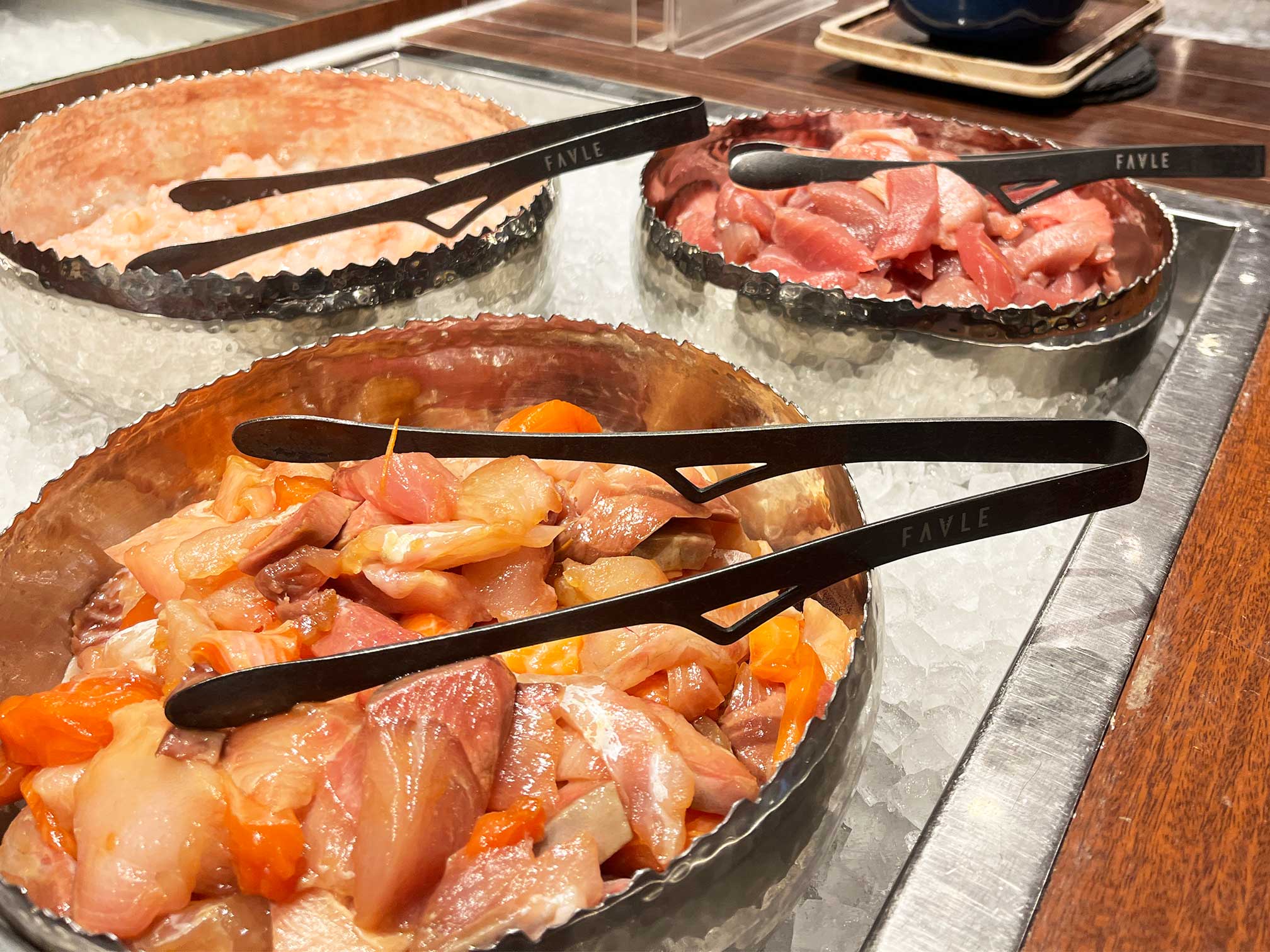 他にも、サーモンとクリームチーズのサラダ、あん肝ネギのポン酢ジュレ、サババッテラ、エビマヨ、かに料理多数……書き切れません。