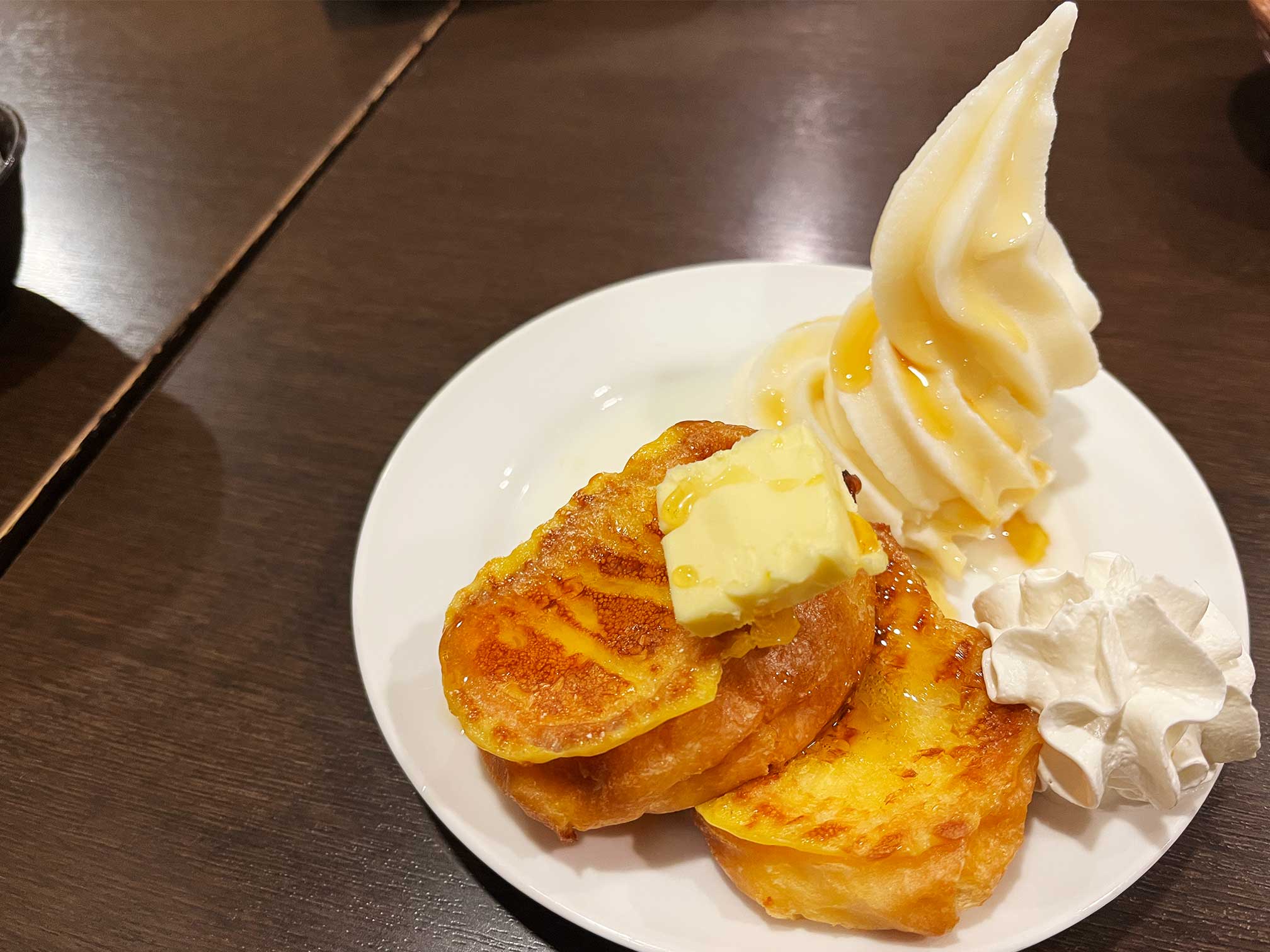 できたてフレンチトーストをソフトクリーム×ホイップ×メイプル×マーガリンで魔改造。
